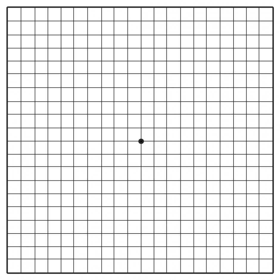 Это простой метод самодиагностики для выявления заболеваний центральной зоны сетчатки. Позволяет заподозрить как возрастную дистрофию сетчатки, так и большинство других заболеваний центральной зоны сетчатки. Инструкция по выполнению теста: